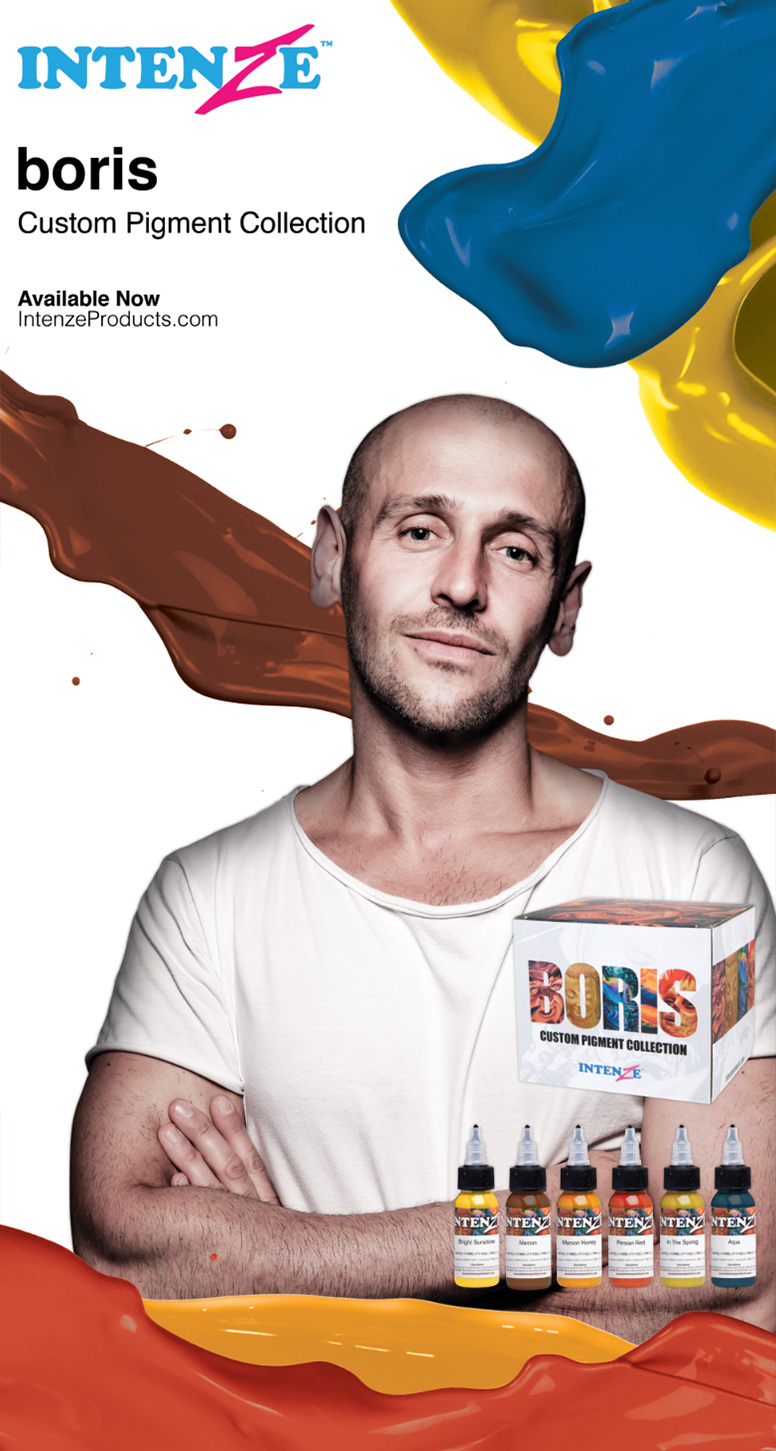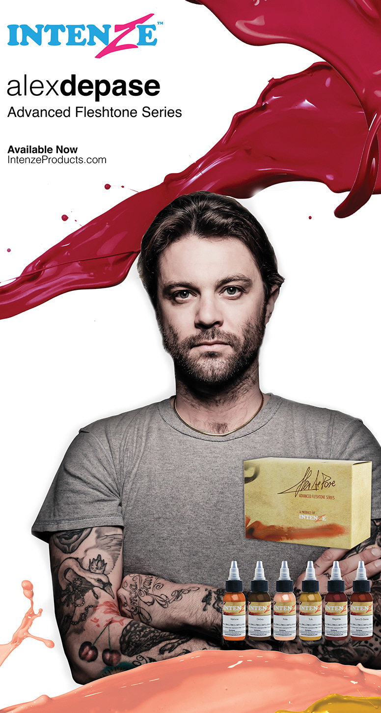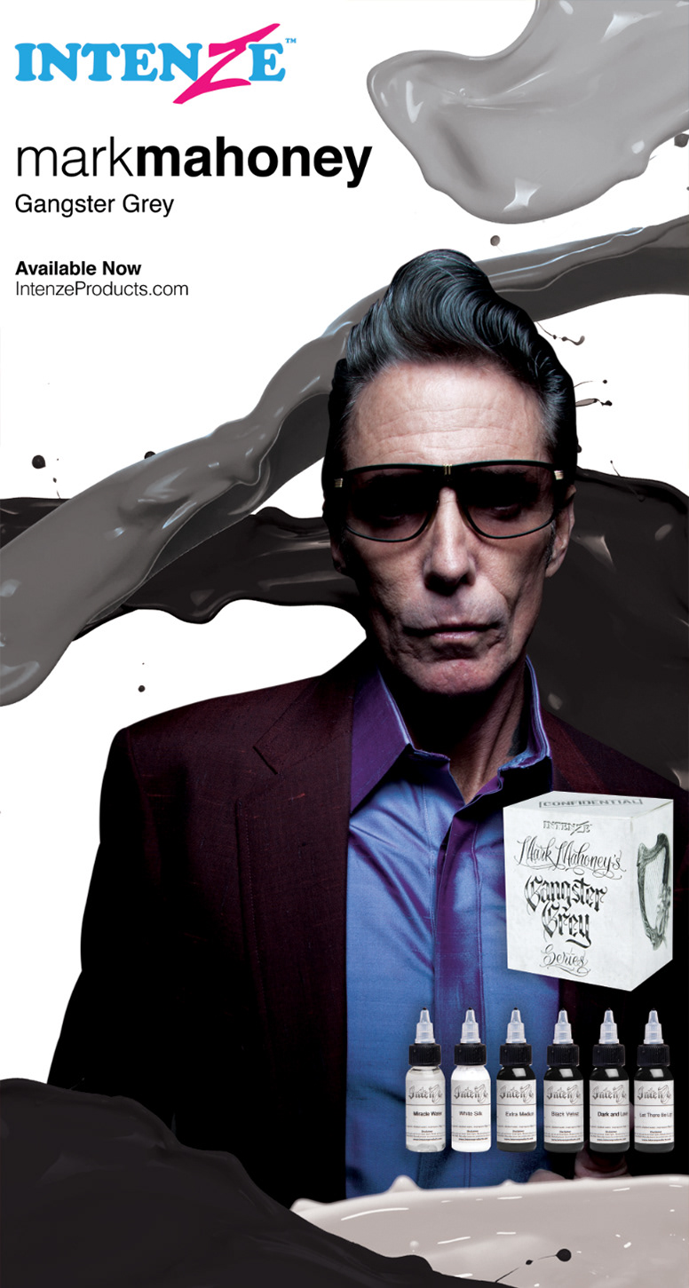 An assorted selection of ads produced for Intenze Tattoo Ink.
