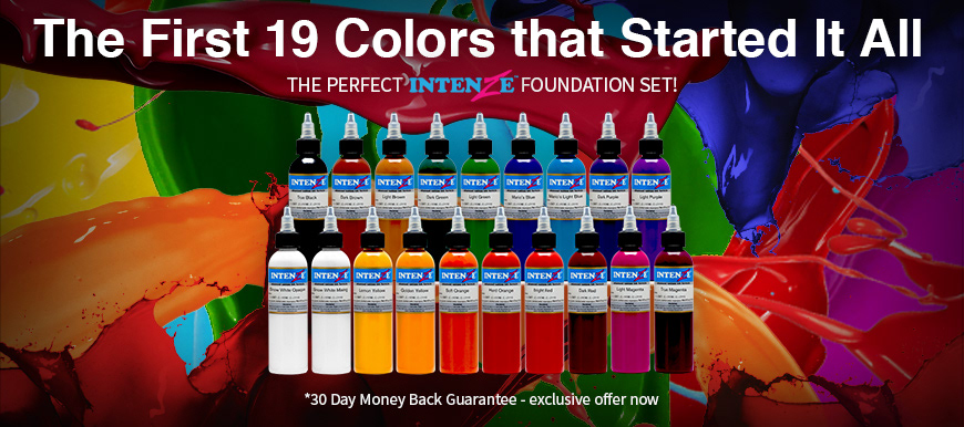 Series of social media and web promotional graphics developed for Intenze Tattoo Ink.